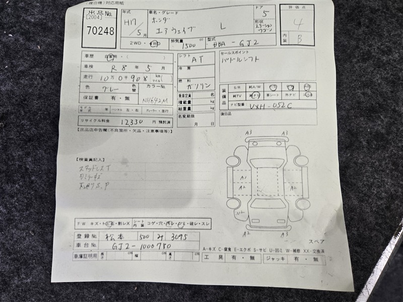 Автомобиль HONDA AIRWAVE GJ2 L15A 2005 года в разбор