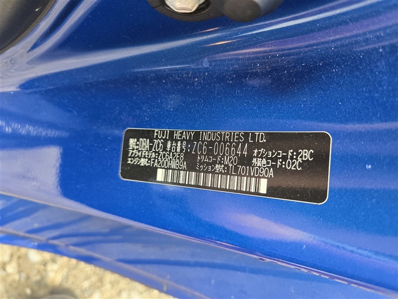 Автомобиль SUBARU BRZ ZC6 FA20DHWB9A 2012 года в разбор